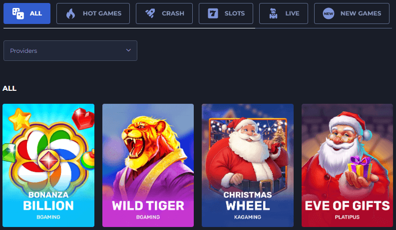 Bety’s casino lobby covers a wide range of categories including Slots, Live Casino, Table Games, Crash Games, and more. Games are provided by developers such as BGaming, Platipus, Yggdrasil, Kalamba, and many more.