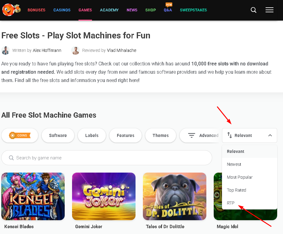 And to answer to the second part of your question, please note that you can find the best RTP slots by using the RTP sorting option on the Games section, as shown down below: