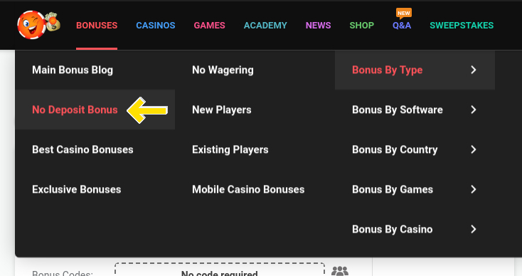 A second option you have is to go straight to the No Deposit Bonus page and click the Country Flag button, just as easy.